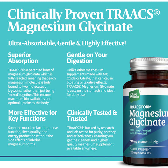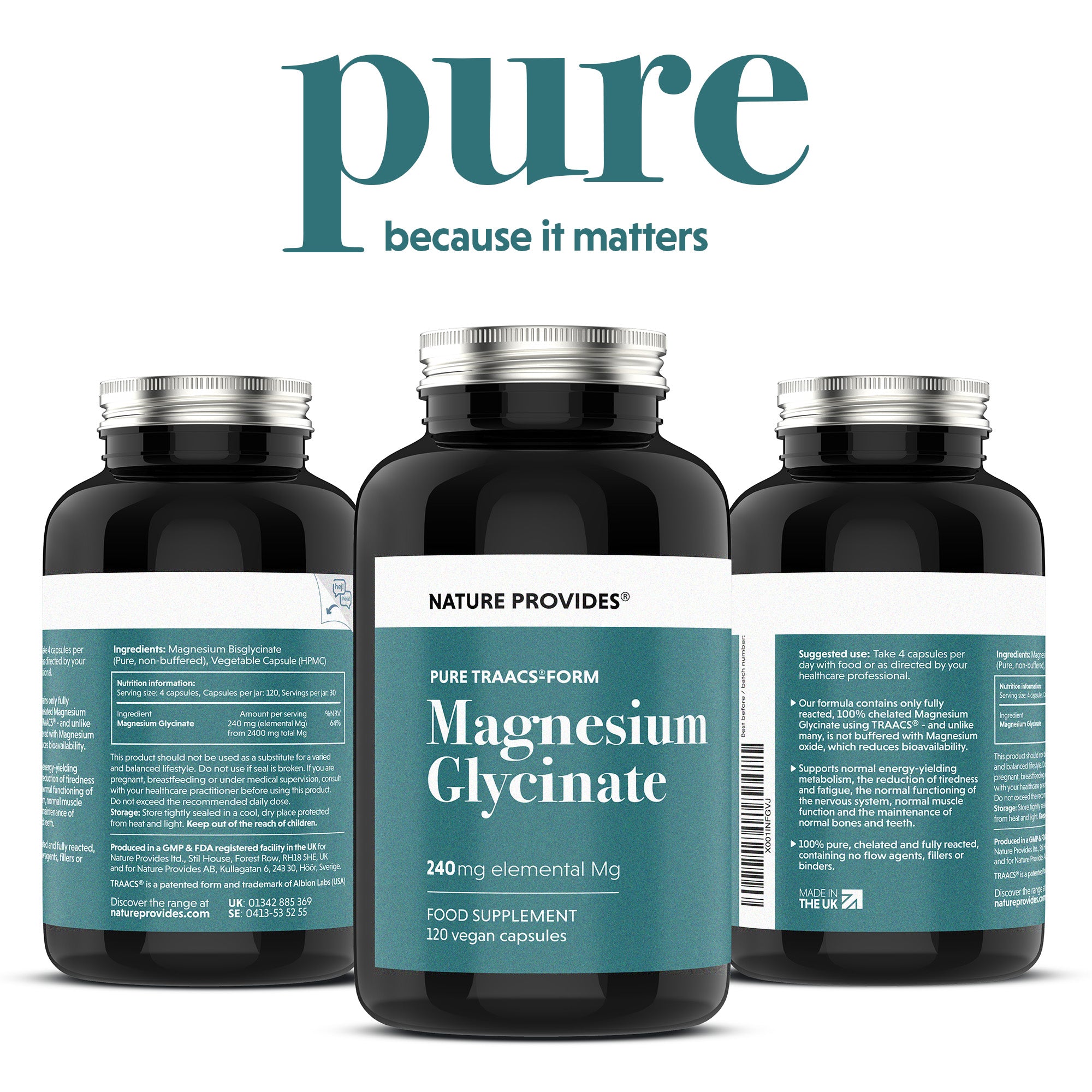 We use pure TRAACS®-form Magnesium Glycinate which is sourced from the USA.
